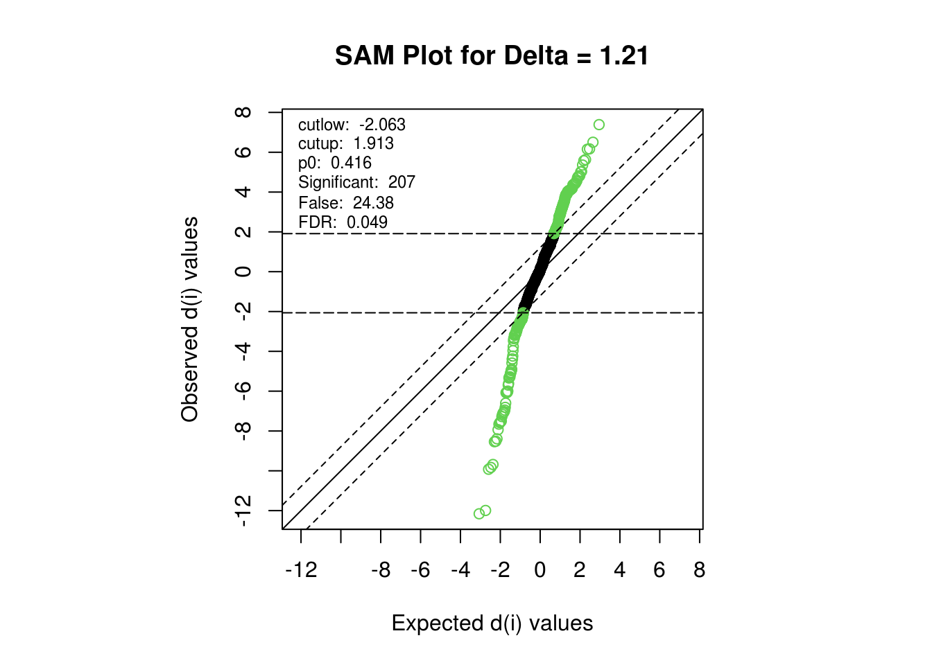 plot(sam.result) ## To obtain a SAM plot, delta has to be specified in plot(object,delta,...).